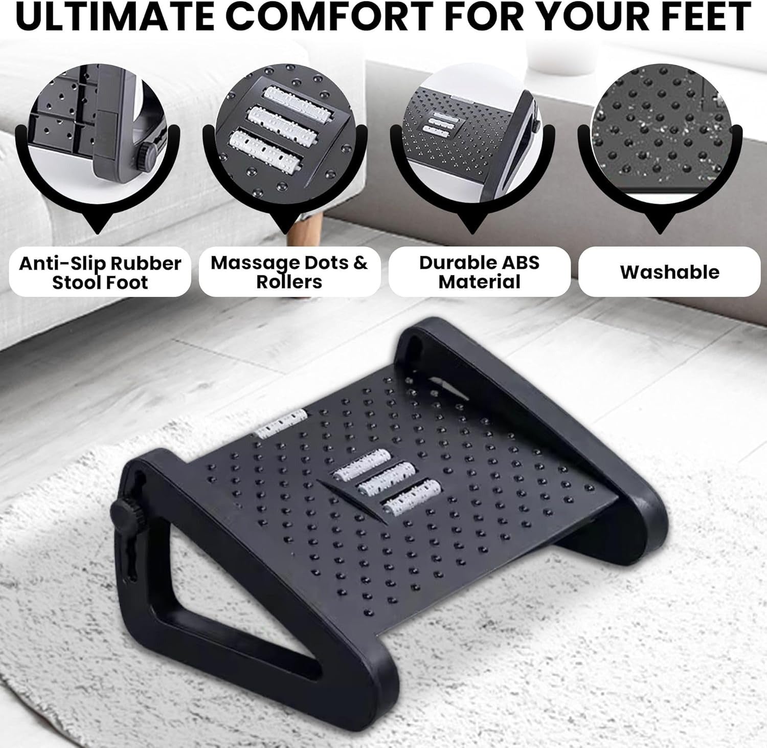 Ergonomic Adjustable Foot Rest for Office & Home – Under Desk Foot Stool with Massage Roller